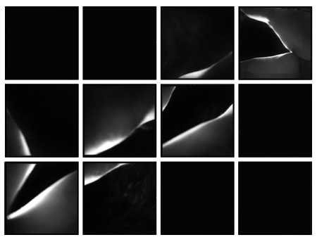Okay, so I've come up with a few ideas. They don't look too much like my mock-up of a few days ago, except that the first one is a near reversal of the mock-up (I use an old Hasselblad and everything's backwards). In the first piece, your eyes are drawn to the left, but to a space that's kind of confusing, and just not very interesting. It's that ass in the upper left corner that I want your eyes drawn to--and the images below it seem to have too much weight, drawing you away. Perhaps this is good?