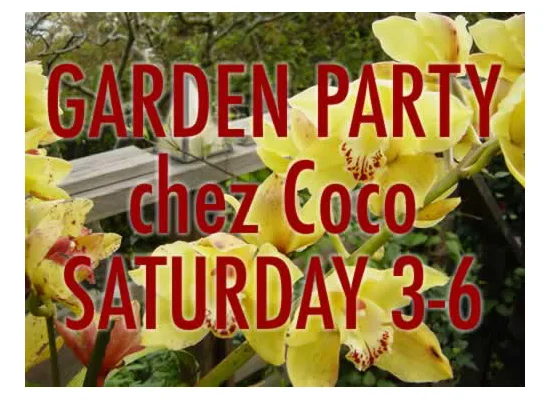 Iain is back in town, so for those swinging LJ'ers who missed him last time around, and for those of you who got to see ALL of him and want more, or for those of you looking to soothe Coco's broken heart, come to my place on Saturday and catch me on the rebound. Bob's out of town, I have the place to myself for two weeks, the weather's fine, IT'S TIME FOR A GARDEN PARTY, and I don't have to drive...