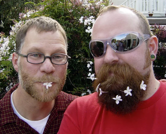 The weather was perfect, Mamoosh showed up with a handsome new beau, John, architects Eric and Seth bonded on my code-violating deck, Funkybear Martin was just fabulous and as bright as the day, whipped cream hanging from his whiskers like an invitation, Paulie snuggled up to BC and Iain on the couch inside, Paulie couldn't tell if the music I selected was music or the walls, Dean and Doug are off to Paris in a few weeks, Nathen's blue eyes were just dazzling against his blue shirt, Chris J may have gotten a new garden design commission from my neighbor Arnie, the former airline pilot and "other woman" to not one but two handsome, considerably-younger men, Arnie and fellow-retiree Ralph still think of me as a twinkie despite the grays, the wrinkles, and the extra 30 pounds, Sarah described some exciting new work for her Marjorie Wood Gallery show opening in May, Reese arrived fashionably late dressed as a silent film star but failed delightfully in staying silent, the ginger/pear/champagne punch was delicious, Jeff has lost 50 pounds in the last 6 months by not eating exactly what I served at the party, Philip reconnected with lost friends, including the Nick Dong-less Jeff, Victor is spinning on Sunday nights now at the Eagle and has Saturdays free for garden parties, my 3-month old niece experienced her first party, my brother and sisters converted Bob's office into a diaper changing facility, who was that adorable Kris that I didn't get to bond with, mid-western Don charmed us with his mid-western charms, Cameron won the award for Most Gravity-Challenging facial hair, and who was the cute cub on his arm again, Rainey and Joe soaked up some sun and showed off their oily muscles, Alex and my former heartthrob Garry talked of Jewish mysticism, Garry showed obvious disappointment when he learned that Gershom Scholem's Major Trends in Jewish Mysticism was on Bob's nightstand and not mine, Steve and Jack talked of electronic fig leaves, their friend Bela was most cuddly and should cook for me some time, 6 people represented those without facial hair, 50 shortcakes were ingested.
