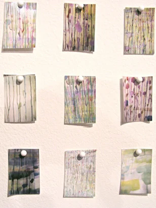 Emily, however, was great, not telling people how to read her work, but guiding them into it, and giving details about her process, which is not only interesting, but key to understanding what she's up to. She's one of the most inventive and imaginative artists around. Her work is fragile, ephemeral and hard to display, and the show closes tomorrow, so if you're looking for something to do this afternoon or tomorrow, get on over to The Oakland Art Gallery, 199 Kahn’s Alley, in Oakland.