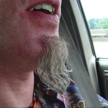 James, now sporting a humdinger of a goatee and living with his parents, picked me up yesterday in his 30 foot 1989 Lincoln Town Car (Cartier Edition). One sort of falls into it, and then it's really hard to get out, as it's so super comfy. We went to every Jimmy Hale Mission Thrift Store ("Mission/Possible"), from Pinson to Bessemer. I bought several interesting shirts, including...- a "Set Free by Jesus" t-shirt (backside: "Serving Jesus 24/7") which can be worn simultaneously with sincerity and irony- several sporty t's, including a "Huffman Baptist Girls" shirt; a "Ramsey Physical Education" shirt with a beautiful ram; a lovely glossy basketball shirt with "Moody" printed across it; a "Birmingham Police Department Police Athletic Teams Basketball" t with a stylized Vulcan popping out of a police badge, a vintage large-collared striped fitted polyester short-sleeve partly see-through shirt.