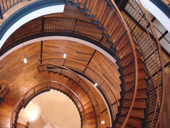 Following Mr. Noguchi's museum, we ambled over the Roosevelt Island Bridge for a walking tour of Roosevelt Island. There are parts that seem straight out of a 60's film vision of an urban utopia, modern functional architecture designed for easy living and proximity to all of one's needs. What's left of the 1839 New York Lunatic Assylum, an octagon-shaped building with a lovely dome, has been converted into housing. They've accurately restored the marble exterior, but stripped the interior and re-imagined the inner spiral staircase with minimal columns and delicate lighting, accenting architectural space without decoration. It's a really stunning space.