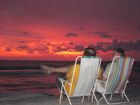 We drove to Fort deSoto, a beautiful undeveloped island near the mouth of Tampa Bay, and waded and bobbed around and got to know each other better, before heading back to the beach house and a yummy dinner with fish that my brother and brother-in-law snatched from the Gulf that morning. We watched the sun set, one of those spectacular pastel fiery blood orange Florida sunsets, as my family danced in the makeshift cabana/disco they set up behind us.