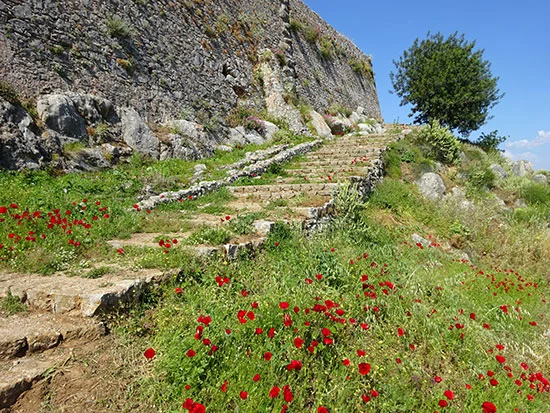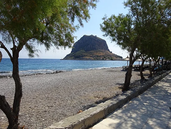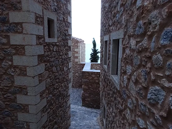 We started our adventure in Monemvasia, a walled medieval city on a big rock of an island just off the coast of the southeastern Peloponnese. It's so romantic there, like unbelievably romantic, medieval towers, surrounded by the sea below and ruins of the older town above... Lyrical, pastoral, melancholic... We ate in a restaurant in a 16th century building with stunningly beautiful views of the sea. I was almost moved to compose an Ode on my spinach pie. The French couple sitting next to us, after their second bottle of wine, couldn't control their Frenchiness and abruptly grabbed each other across the table and started French kissing, right over their salata horiatiki, cigarettes dangling from their roving hands and enveloping the rest of us in a smoky haze as they licked each other's faces, audibly, a symphony of cats joining in with their own hungry meows.