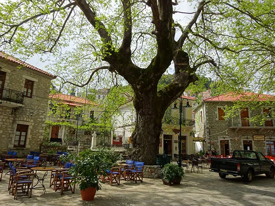 Our next stop was for galaktoboureko in Kosmas, a sweet little confection in a sweet little hilltop town shaded by beautiful old plane trees. Galaktoboureko is an intense experience of sugar conveyed through the mediums of custard and filo, the whole thing actually submerged in drippy sugar syrup. It's like drugs. I sat in the empty square with Stavros, under the plane trees, silently composing "Ode on a Slice of Galaktoboureko" in my hyperglycemic stupor. The town was destroyed in WWII but rebuilt exactly as it was before, and hopefully as it will stay forever.