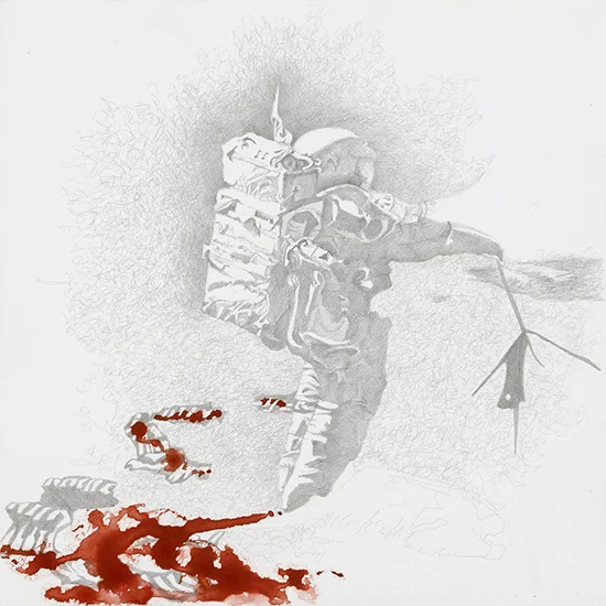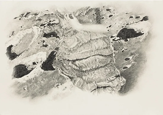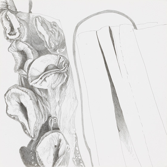 Her eyes light up when she talks about space junk, the "final frontier," and bloody moon shoes. Yet like not wanting someone to spoil the end of the movie, I don't want her to talk too much about this stuff and upset the experience of discovery. I could look at those silverpoints all day, lost in the folds of lunar landscapes, and suddenly there's an arm, or those ballet slippers. There's always deeper to dig, always some delightfully enigmatic image that frustrates an easy reading.