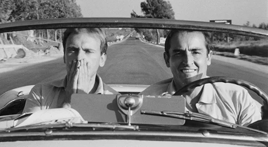 And now my sister Carol is visiting. We’re up at my other sister June’s for the day, in Santa Rosa, the first of my birthday celebrations. Last night Carol and I watched a wonderful Italian film, Dino Risi’s Il Sorpasso about a studious shy recluse, Roberto, swept away by a gregarious stranger, Bruno. Virtually the only person in town while the rest of Rome is off to the country celebrating Ferragosto, Roberto lets Bruno use his phone, and then reluctantly agrees to take a short break from his studies to share a quick drink with the dynamic Bruno, who is eager to show his gratitude for the use of Roberto’s phone. Once in the car, numerous delightful diversions ensue, with Roberto gradually relaxing and letting himself enjoy the various unexpected and wild whims of Bruno. After 2 days on the road together, Roberto, excitedly egging on Bruno to pass cars, laughing wildly, declares the past 2 days to be the best of his life. The car swerves off the road, Bruno is thrown safely to the shoulder, but Roberto, our shy recluse, trapped in the car, is crushed to smithereens as the car tumbles down the cliff.