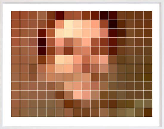 Munch's expressive and intensely personal treatment of psychological turmoil over a century ago finds in our era an equivalent in the selfie and Facebook, where intimate moments are documented, made public, discussed and analyzed. The six photos in my series are culled from my recent online dating experiences, but printed in such low resolution as to render details and content almost unrecognizable. The closer one gets to these photos, the less one knows. I've included images from classic Hollywood. Even though they are stripped of detail, they still convey meaning—familiar archetypes of beauty and desirability. My intent is to draw attention to and frustrate our voyeuristic impulses. We're invited to ponder not only what we're looking at, but how and why.